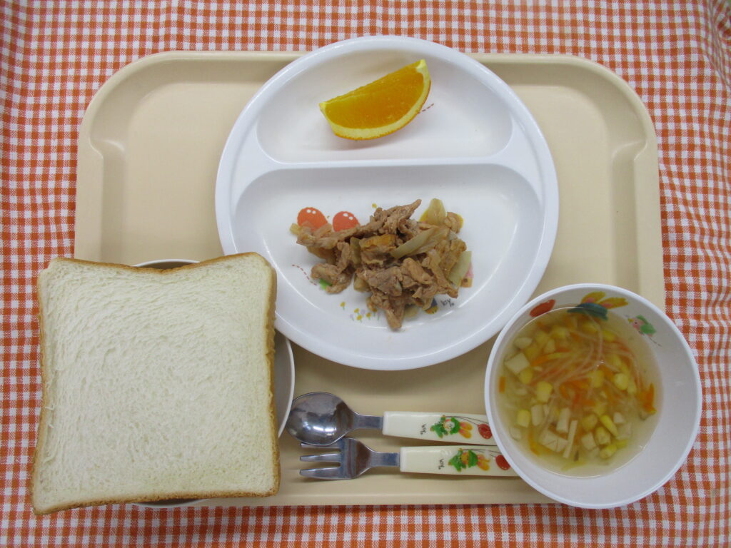 2026年4月8日のおいしい給食 2026年4月8日 おいしい給食すみれ日記 今日の給食パン ポークチャップ春雨スープ オレンジ 離乳食(中期)パンがゆ ツナにんじん煮 玉ねぎスープ 今日のおやつおにぎり(おかか) ぱんだ組のおともだち今日のカロリー 470kcalポークチャップが大人気でしたフォークとスプーンがとまりません😊 一覧に戻る