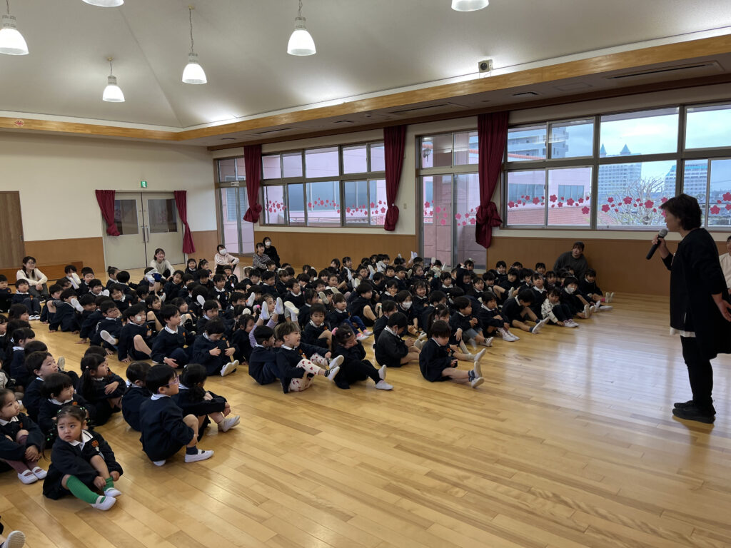 園長先生の話を聞いたり、クラスの先生の紹介を聞いたりしながら「これからどんなことをするのかな」と期待に胸を膨らませている