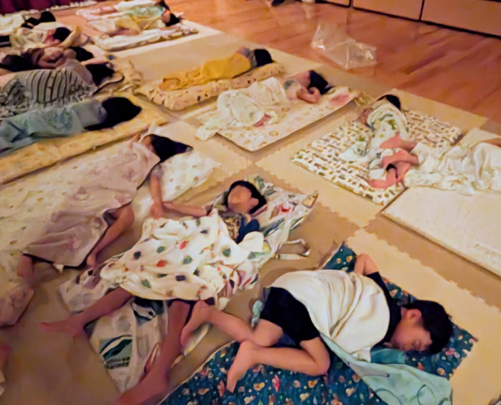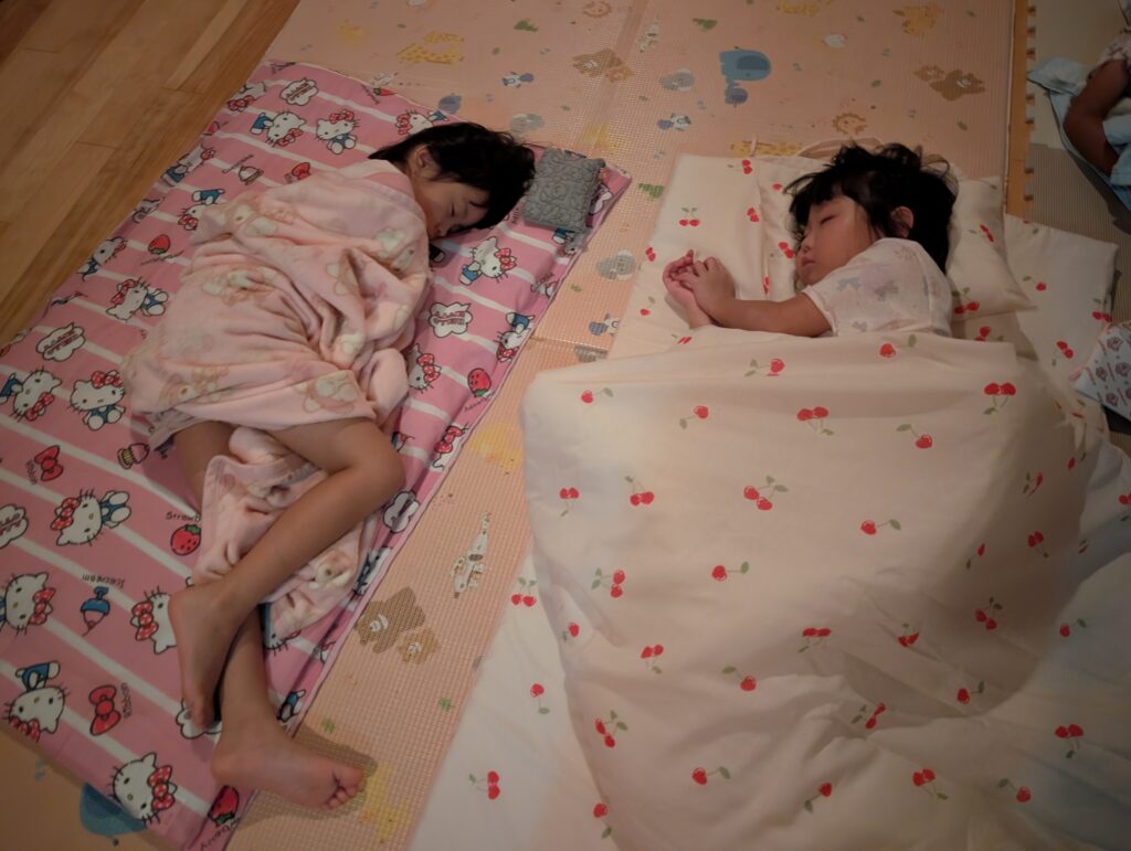 お友達と寝れることにウキウキして「今日は絶対寝ない!」と言っていた子もあっという間に夢の中です。