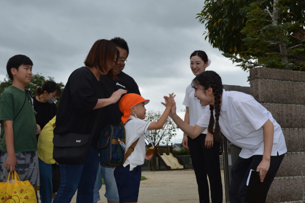 お泊り保育2日目の様子④ 2025年9月22日 すみれ日記 楽しかった時間もあっという間に過ぎ、お帰りの時間が近づいてきました。 クラスごとに楽しかった思い出を振り返りました。 お迎えの時間になると、子ども達もおうちの方との再会に大喜び! 途中体調を崩してしまった子もおりましたが、全員で参加したお泊まり保育、私たち職員にとっても本当に楽しく、子ども達の成長に感動した2日間でした。 一覧に戻る