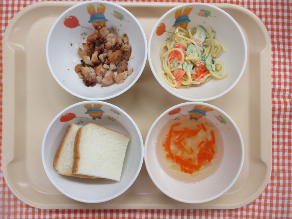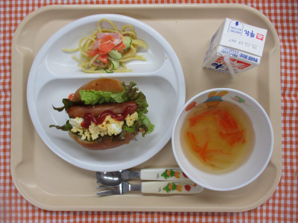 2025年12月11日のおいしい給食 2025年12月11日 おいしい給食すみれ日記 今日の給食たまごホットドッグ スパゲティーサラダ コンソメスープ 牛乳(3~5歳児) 離乳食(完了期)パン 鶏の照り焼き スパゲティーサラダ コンソメスープ 今日のおやつおにぎり(鮭) きく組のおともだち今日のカロリーは、450kcalです。パンに卵とウインナーを上手にはさんで食べていました♪ 一覧に戻る