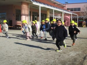 園庭では毎日子ども達が元気に遊んでいます。外遊びの始まりは、すみれプロジェクトでもある、「かけっこ」から始まります。「よーい、どん!」の合図で勢いよく走り出す子ども達。4月から取り組んできたことで体力もつき、ゴールまで全速力で走り抜けています。身体を動かすと身体の芯から温かくなり、寒い冬でも元気に乗り越えることができますね。