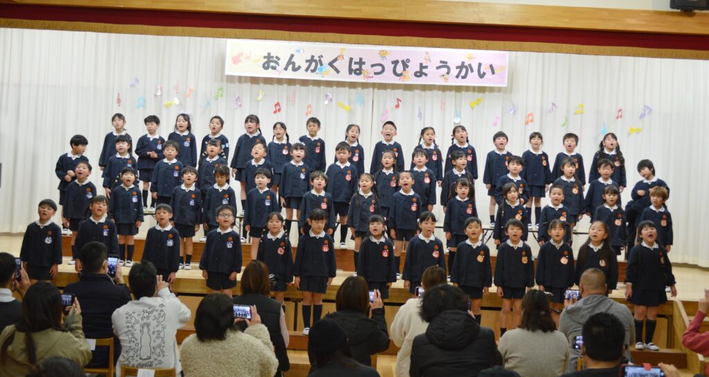 【ときめきフォト】 おんがくはっぴょうかい 年長組 2026年2月5日 2026年2月5日 すみれ日記 みんなで揃えて合奏したり、歌ったりし、音を重ねて作り上げた演奏は、これまでたくさん練習した成果が しっかりと感じられる発表となりました。 うさぎ組『おちゃらかほい』『ね』 ピアニカ『ハイホー』 ねこ組『でんでらりゅうば』『きみにはくしゅ』 合奏『RPG』 りす組『ずいずいずっころばし』『ありがとうの花』 全体合唱『時を超えて』 一覧に戻る