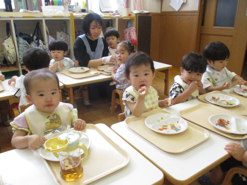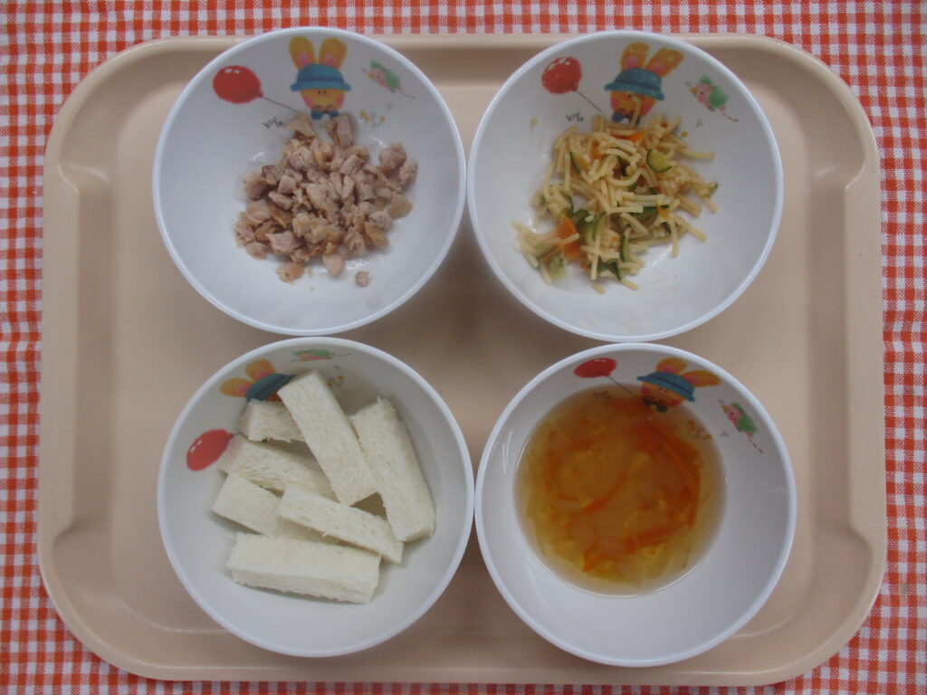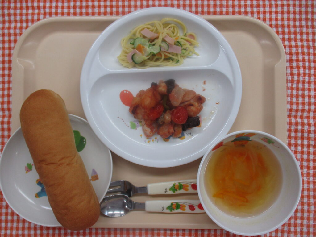 2025年9月18日のおいしい給食 2025年9月18日 おいしい給食 今日の給食パン チキンのトマト煮 スパゲティーサラダ コンソメスープ 離乳食(初期)パン粥 玉葱ペースト 玉葱にんじん煮 離乳食(中期)パン粥 玉葱にんじん煮 じゃがいもスープ 離乳食(後期・完了)パン 鶏の照り焼き スパゲティーサラダ コンソメスープ 今日のおやつおにぎり(おかか) こあら組のおともだち今日のカロリーは、466kcalです。今日のチキンのトマト煮には、ひよこ組・おひさま組・そら組がすみれ農園で収穫したピーマン・なすが入っています!また、こども園のトマトハウスで栽培したトマトも入っています! 一覧に戻る