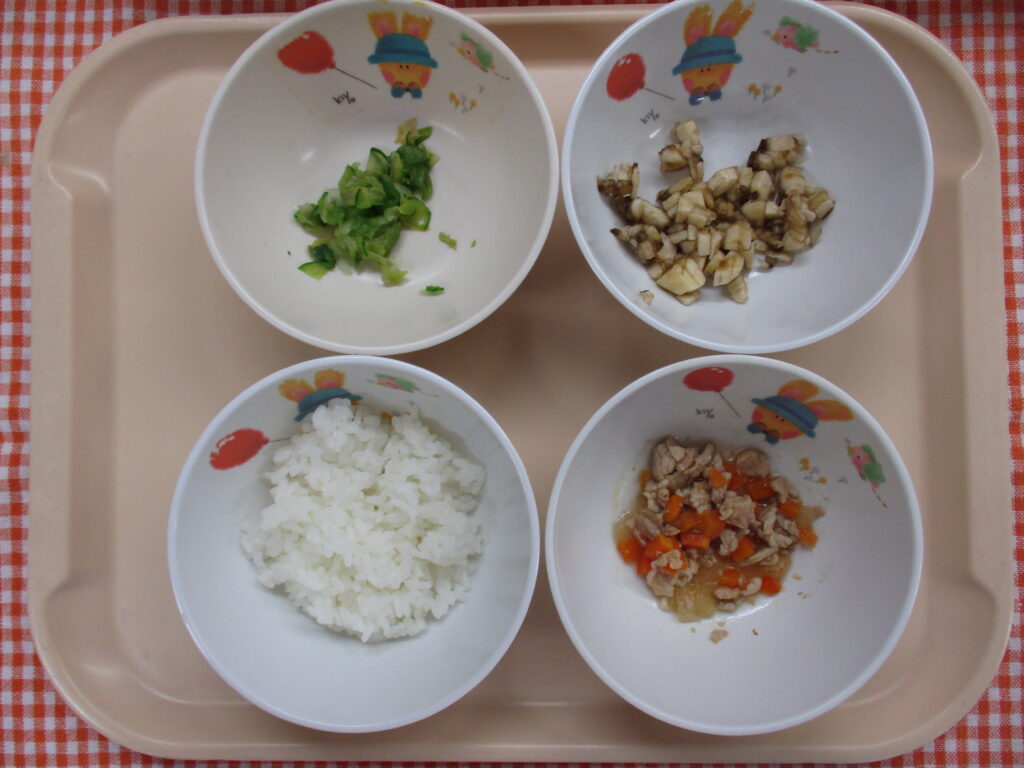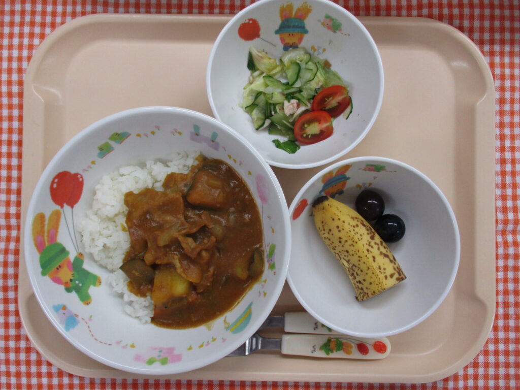 ポークカレー 梅肉ささみサラダ バナナ ぶどう(3~5歳児)