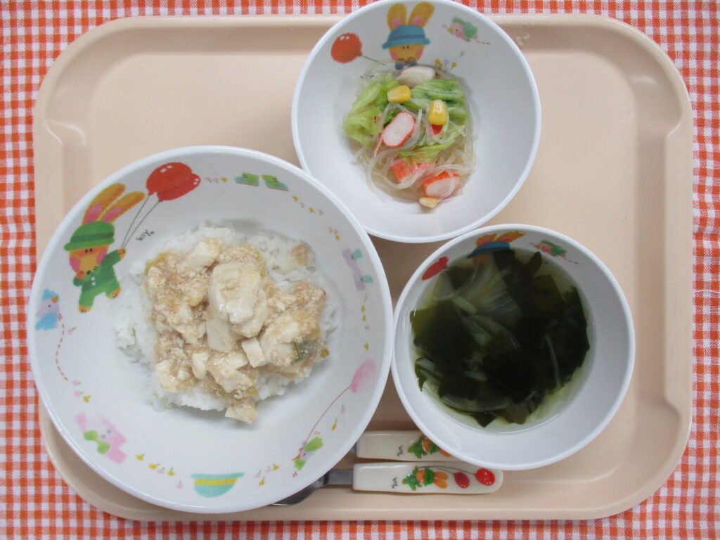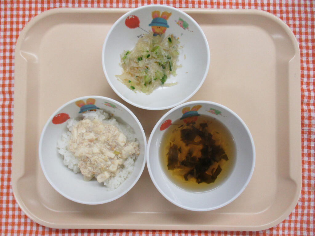 マーボー豆腐丼 春雨サラダ わかめスープ