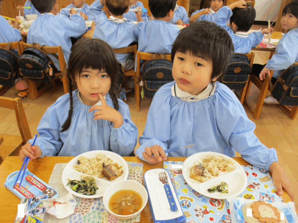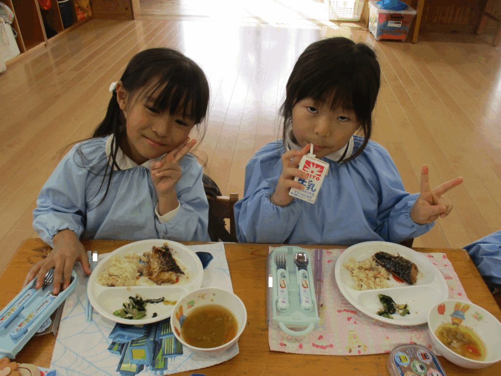 なにがおいしいか聞くと、「ごはん!」「魚!」「全部!」と元気よく教えてくれました!