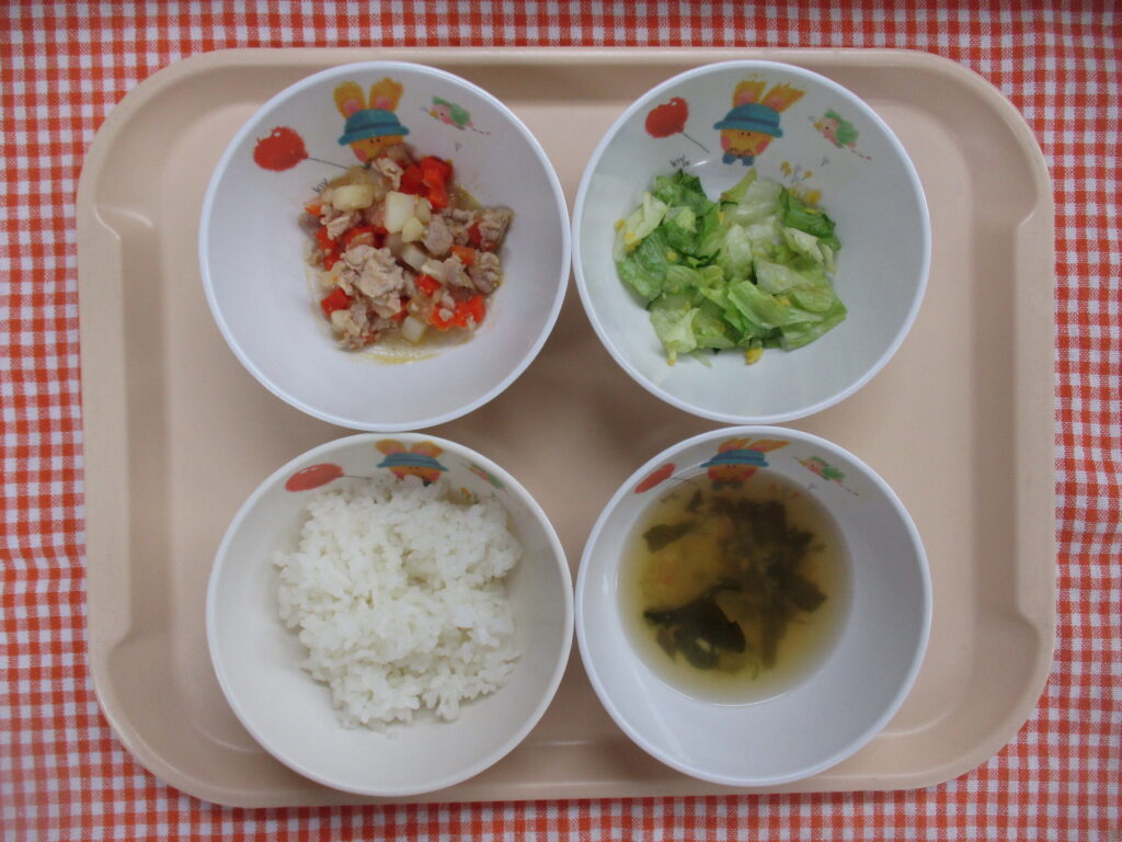 「肉じゃがおいしかったー!」と言っておかわりしてくれました!年中さんが収獲してくれたじゃがいもは来週の給食で提供します♪