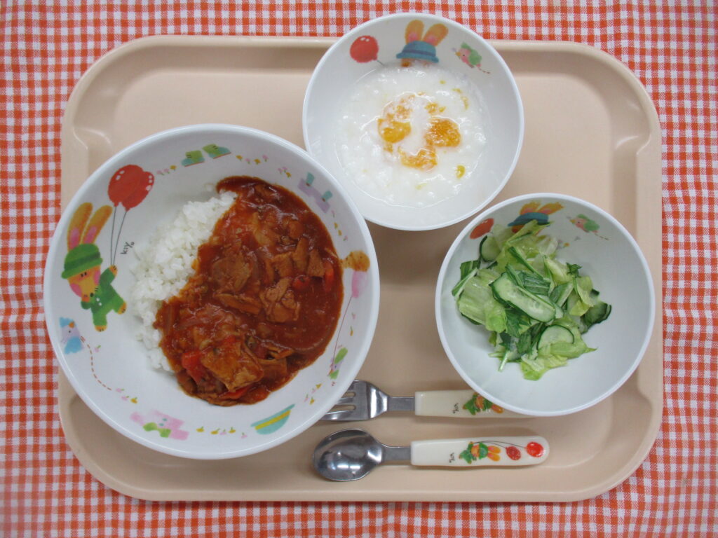 今日は、みんなが大好きなハヤシライスでした!いっぱい食べて明日のクリスマスこども会の発表、元気に踊ろうね😊