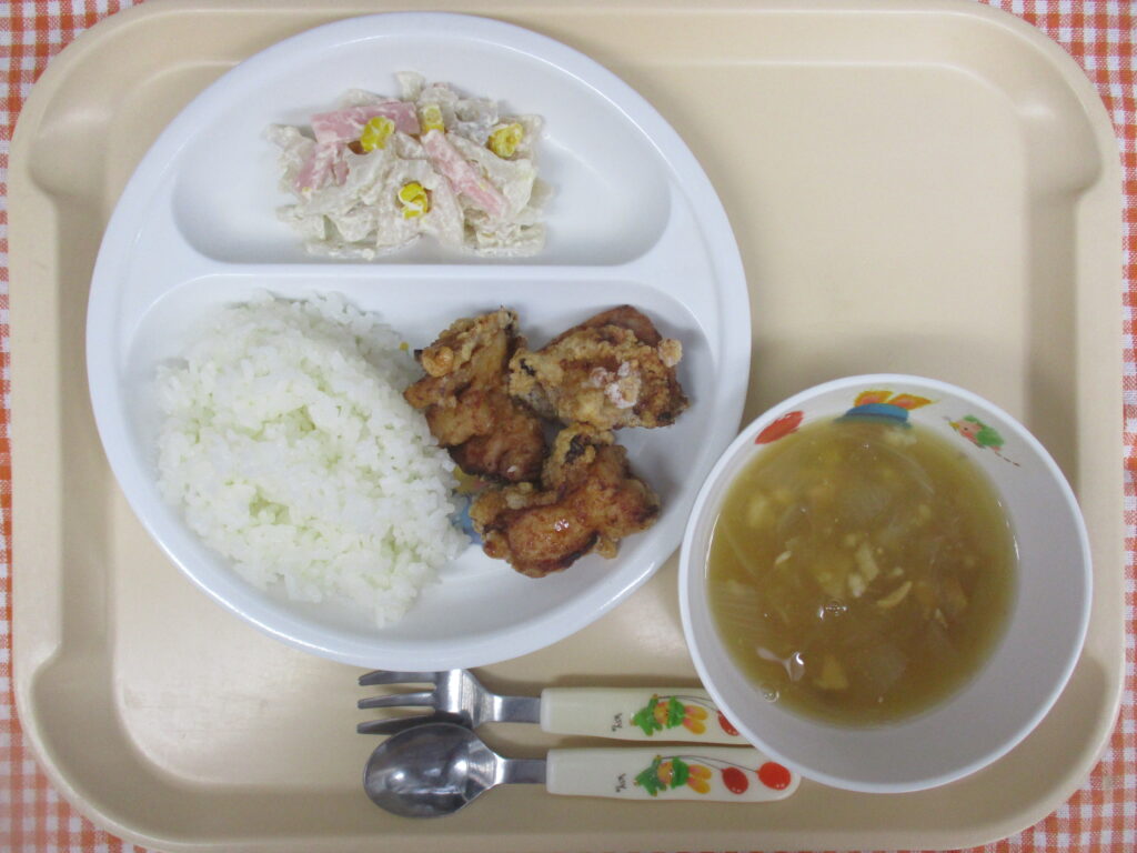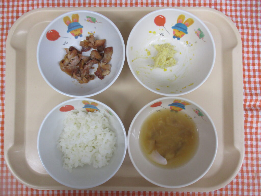 2025年12月25日のおいしい給食 2025年12月25日 おいしい給食 今日の給食ごはん 鶏のから揚げ れんこんサラダ 椎茸玉ねぎ汁 離乳食(完了期)」ごはん 鶏の照り焼き れんこんサラダ 椎茸玉ねぎ汁 今日のおやつジャムサンド たんぽぽ組のおともだち今日のカロリーは、665kcalです。たんぽぽ組のおともだちは、「せんせいおいしい!」「おかわりした!」「ぜんぶたべた!」とたくさん話してくれました! 一覧に戻る