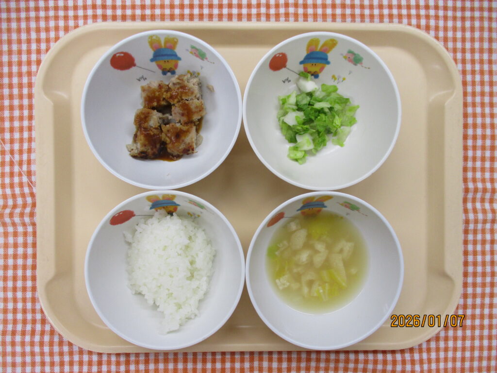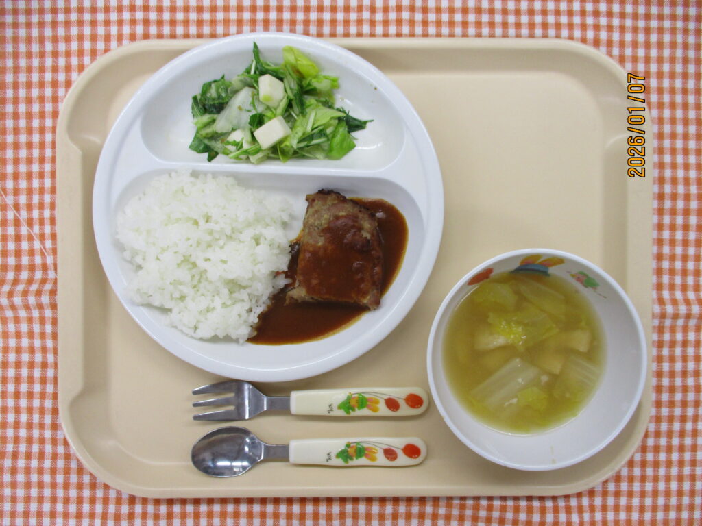 2026年1月7日のおいしい給食 2026年1月7日 おいしい給食 今日の給食ごはんデミグラスソースハンバーグはんぺんサラダ白菜油揚げ汁 ⭐すみれ農園で収穫した白菜が「白菜油揚げ汁」に入っています! 離乳食(完了期)ごはんデミグラスソースハンバーグはんぺんサラダ白菜油揚げ汁 今日のおやつ 七草がゆ 今日のカロリー 564kcal「ハンバーグとサラダとごはん、おかわりするんだ!」とおかわりの時間を楽しみに待っていました😊 一覧に戻る